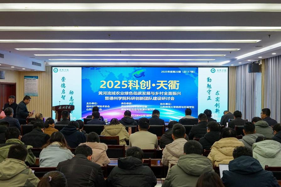 为加强黄河流域农业绿色低碳发展和生态文明建设,助力乡村全面振兴,12月2日,2025“科创·天衢”主题活动暨德州学院科研创新团队建设研讨会在厚德楼二楼报告厅举办。会议主题为黄河流域农业绿色低碳发展与乡村全面振兴。本次大会由德州市科学技术协会、山东地理学会联合主办,德州学院科学技术协会与生态与资源环境学院共同承办,山东师范大学地理与环境学院协办。山东师范大学王成新教授、山东理工大学田业冰教授出席大会并作报告,党委委员、副校长李甲亮出席大会并致辞。