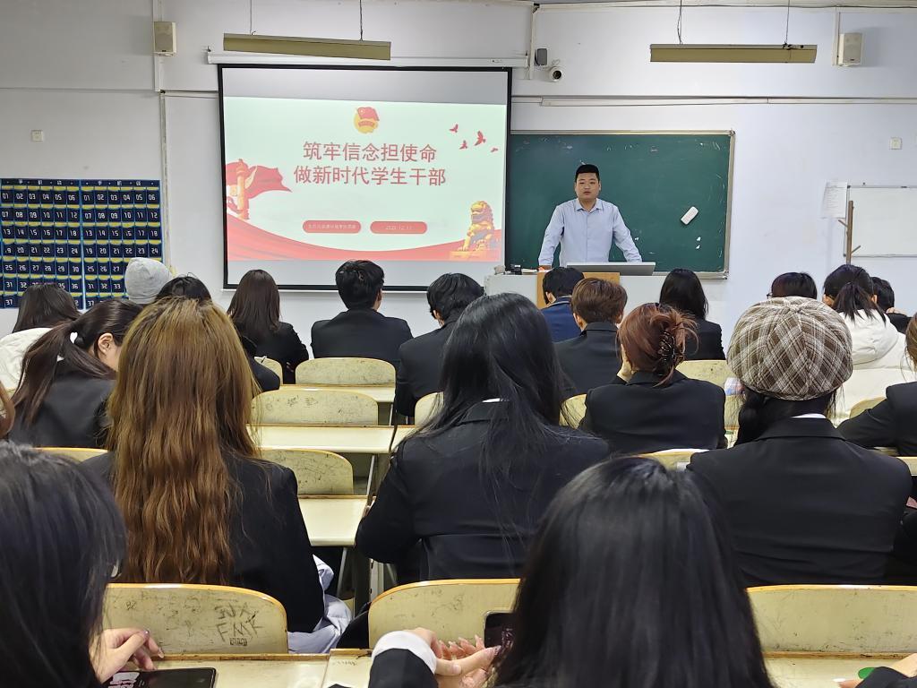 培训中,杨老师围绕“理想信念是学生干部的立身之本”立足高校学生工作实际,从“坚定政治立场、践行服务宗旨、锤炼过硬本领”三个关键维度,系统阐释了合格学生干部的核心素养要求授课过程中,杨老师结合学生工作典型案例,深入浅出剖析理论内涵,引导学员深刻把握个人成长与学院发展、家国建设的内在关联,着重强调学生干部要始终坚守服务同学的初心使命,在日常工作中主动担当作为,切实发挥好连接学院与学生的桥梁纽带作用。