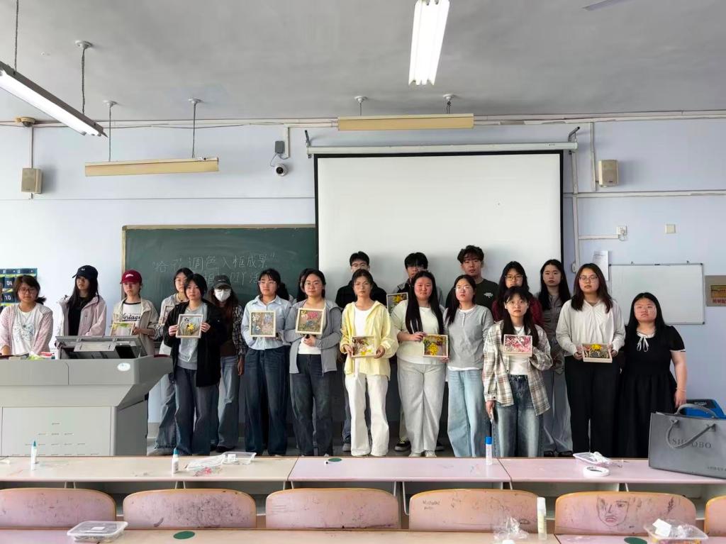 为丰富文化生活,缓解学生学业压力,提升审美素养与动手实践能力,传递治愈温暖的生活理念,生态与资源环境学院心语协会于2026年4月11日下午,在德州学院求实楼307教室开展“拾花调色,入框成景”干花相框DIY活动。